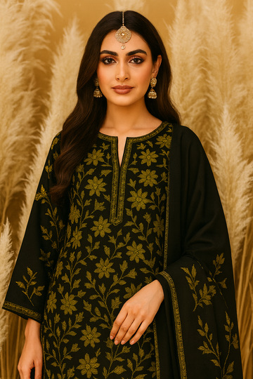 Chic Black Floral Light Khaddar 3 Piece Winter Suit 🖤