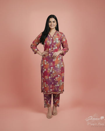 Printed Light Khaddar 2 Piece Suit with Lace – Multicolor Pink