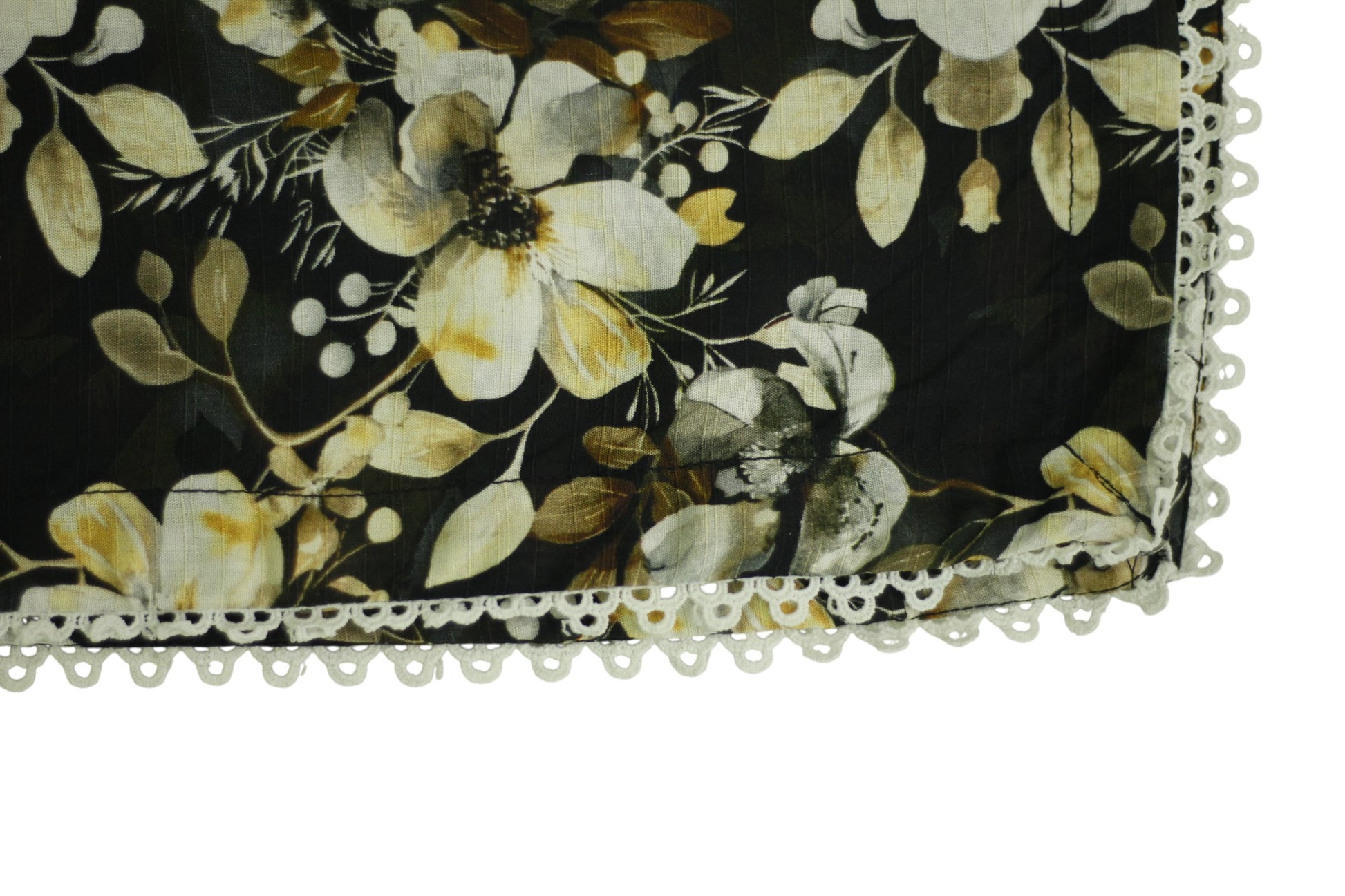 Black Printed Linen 3-Piece Banadora Suit with Lace Detailing