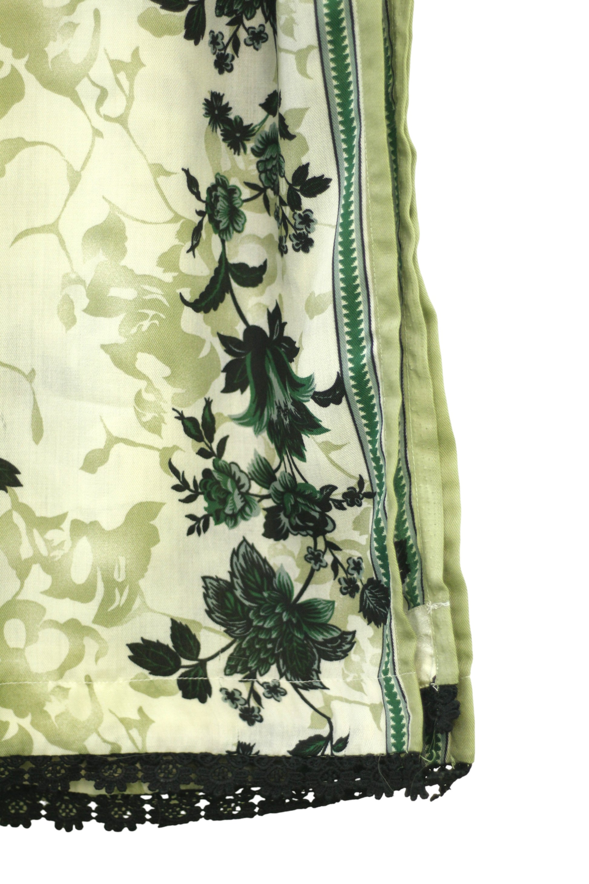 Cream White Printed Linen 3-Piece Banadora Suit with Green Floral & Lace Detailing