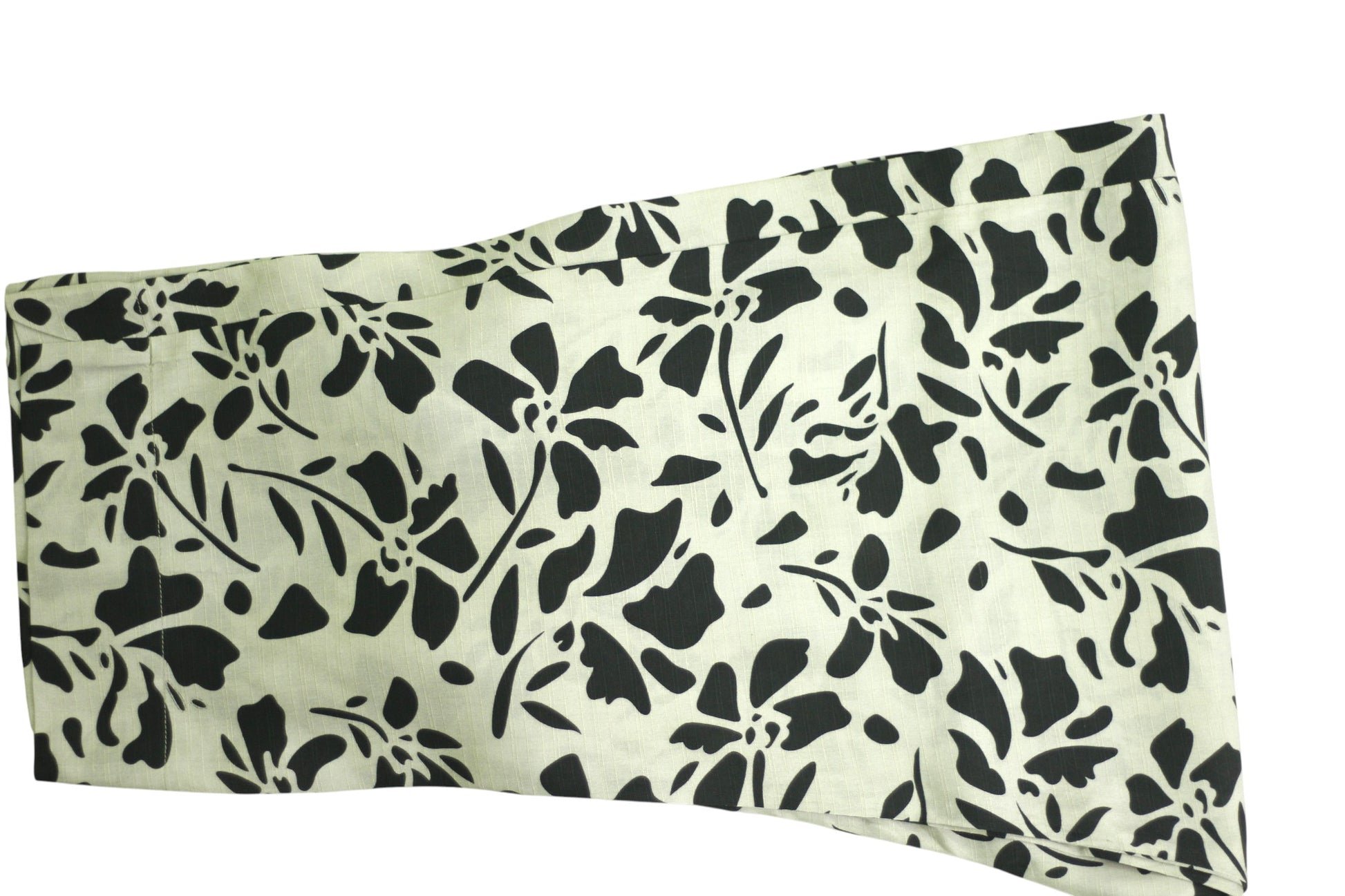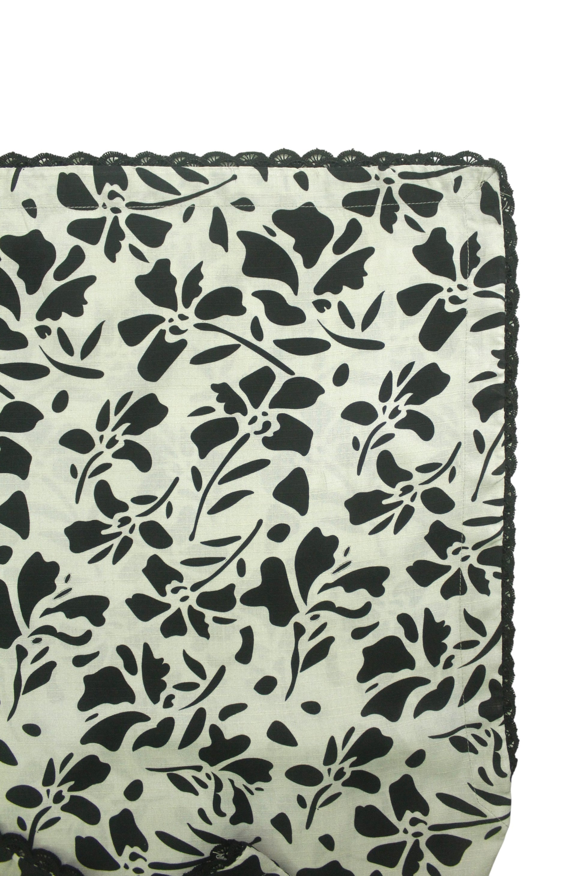 Grey Printed Linen 3-Piece Banadora Suit with Black Pattern & Lace Detailing
